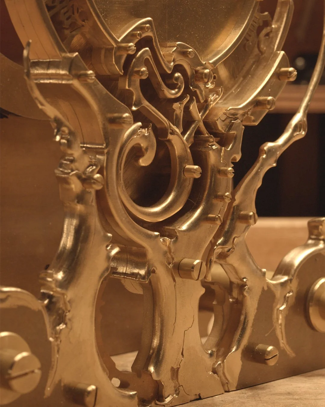 I’m slowly working away at this mechanical piece on the side. This panel is the visually the most dominant part of the clock, so I wanted to give it the love it deserved.