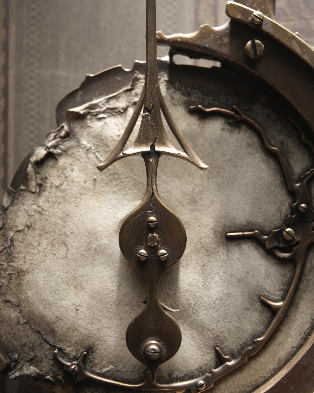 I tried something a little different with the hands on this clock. The hour hand, rather than being a straight spear-like shape, is a triangular cutout. This works really well for readability from a distance. It also makes for an interesting overlap when the hands line up. I definitely like this look enough to consider it for future projects, should the stylistic fit arise.