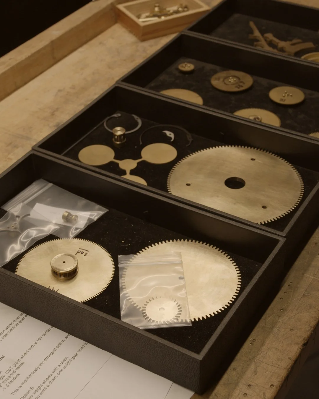 -The large dial will have a shadow-style moon phase display. It will also have a seconds hand spanning the whole dial, ticking solidly, and deliberately with the escapement. I made a clock with a second hand once before, and the movement was really nice. Since then I’ve wanted to make a clock with a large seconds dial, and this clock was a good candidate.